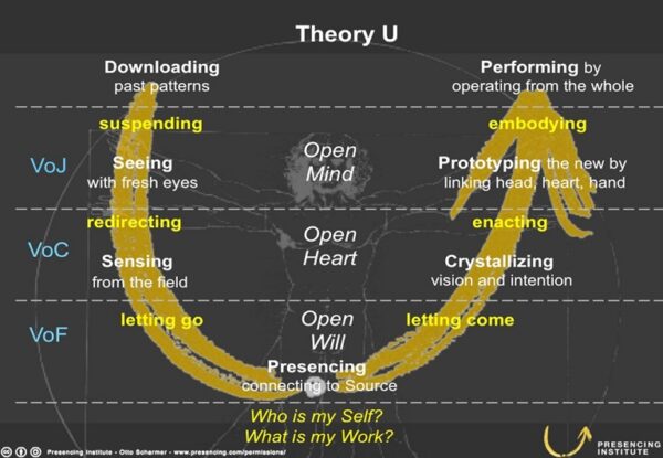Theory U is change philosophy and process co-created by Otto Scharmer and his colleagues at the Presencing Institute https://www.presencing.org and the Massachusetts Institute of Technology.